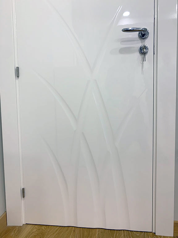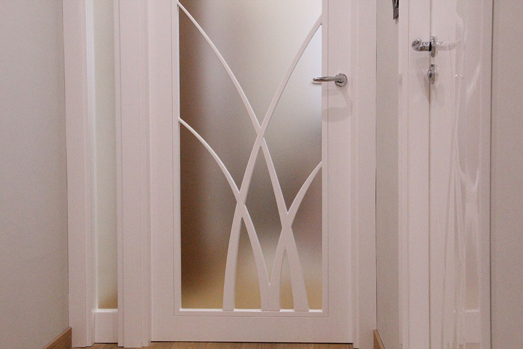 Puertas lacadas de interior de un estilo moderno, que destaca por su original dibujo grabado en ambas caras de la puerta.